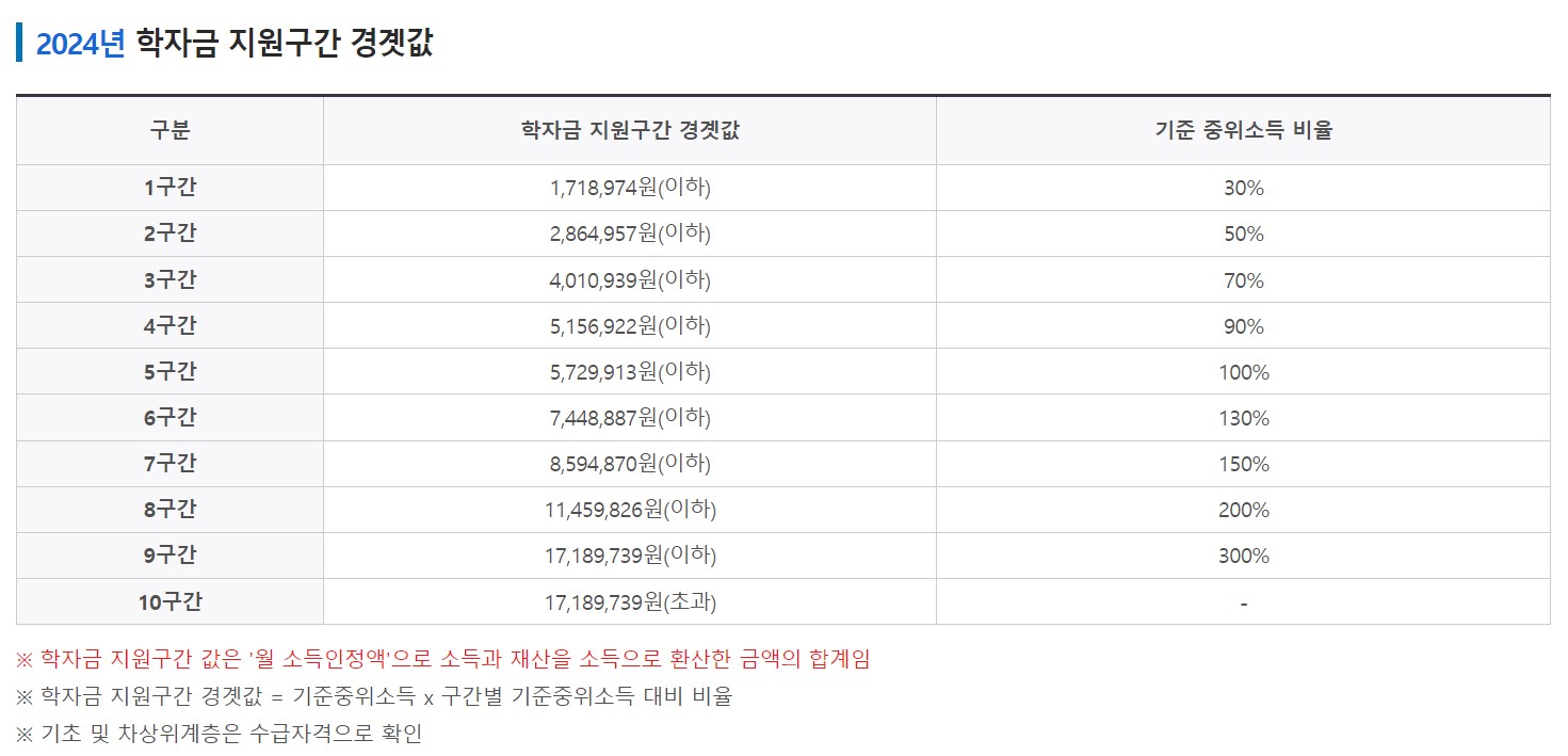 - 4~8구간: 학기별 최대 175만 원(연간 최대 350만 원) 범위 내에서 지원